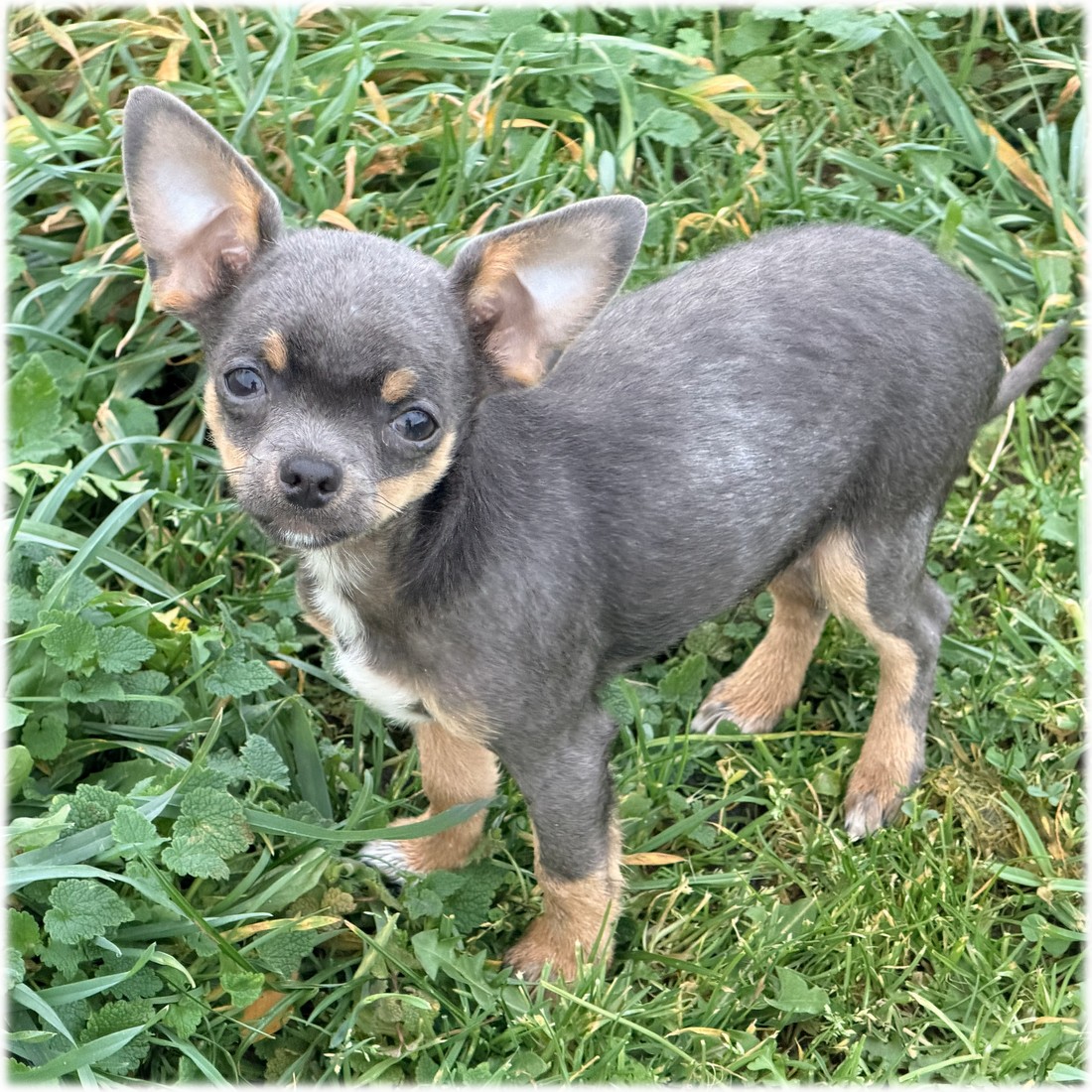 L'élevage du Domaine de Mondon vous propose Léo, adorable petit mâle Chihuahua de couleur Bleu à poils court.