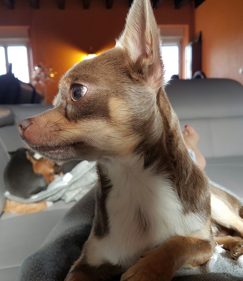 Répondant au nom de Lucie, cette femelle Chihuahua est née le 13-08-2016.